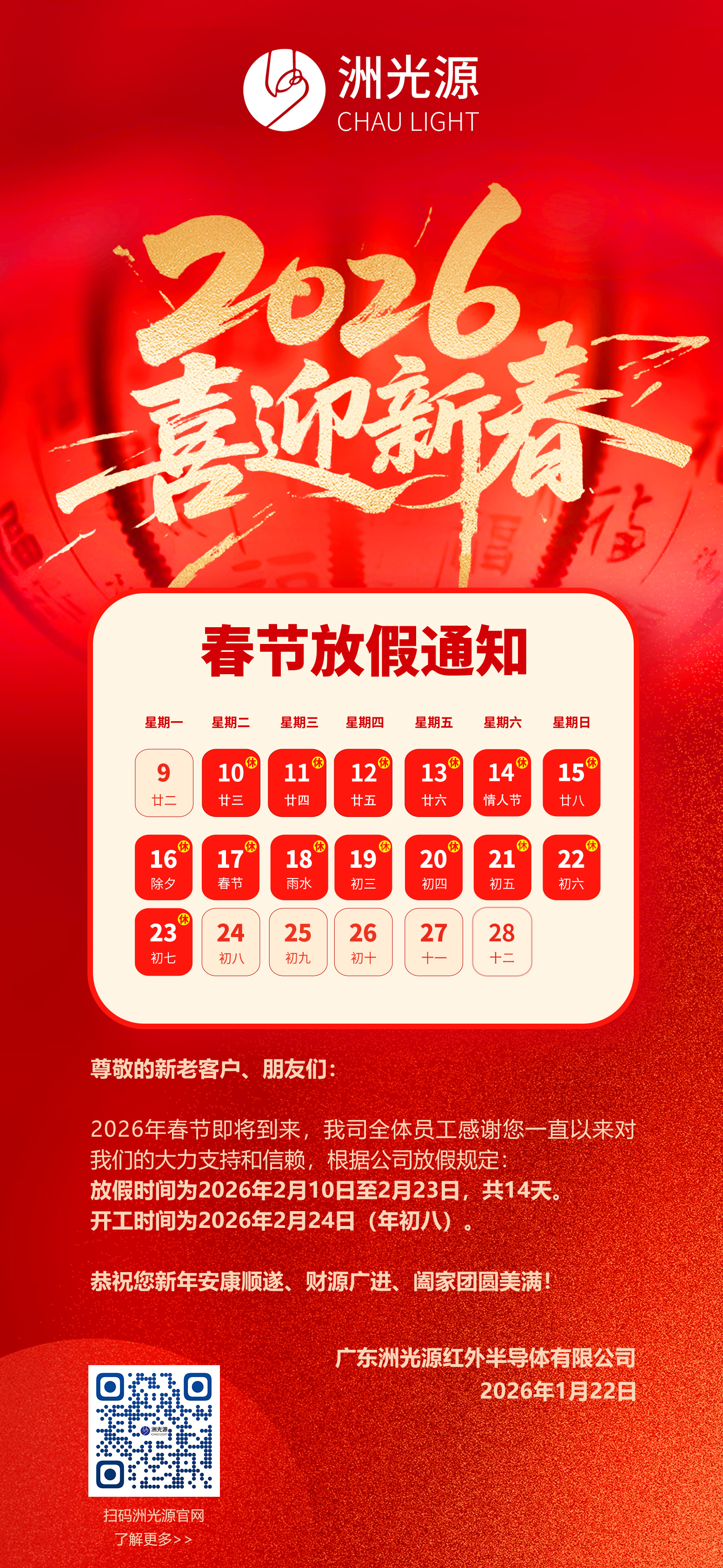 广东洲光源2026春节放假通知