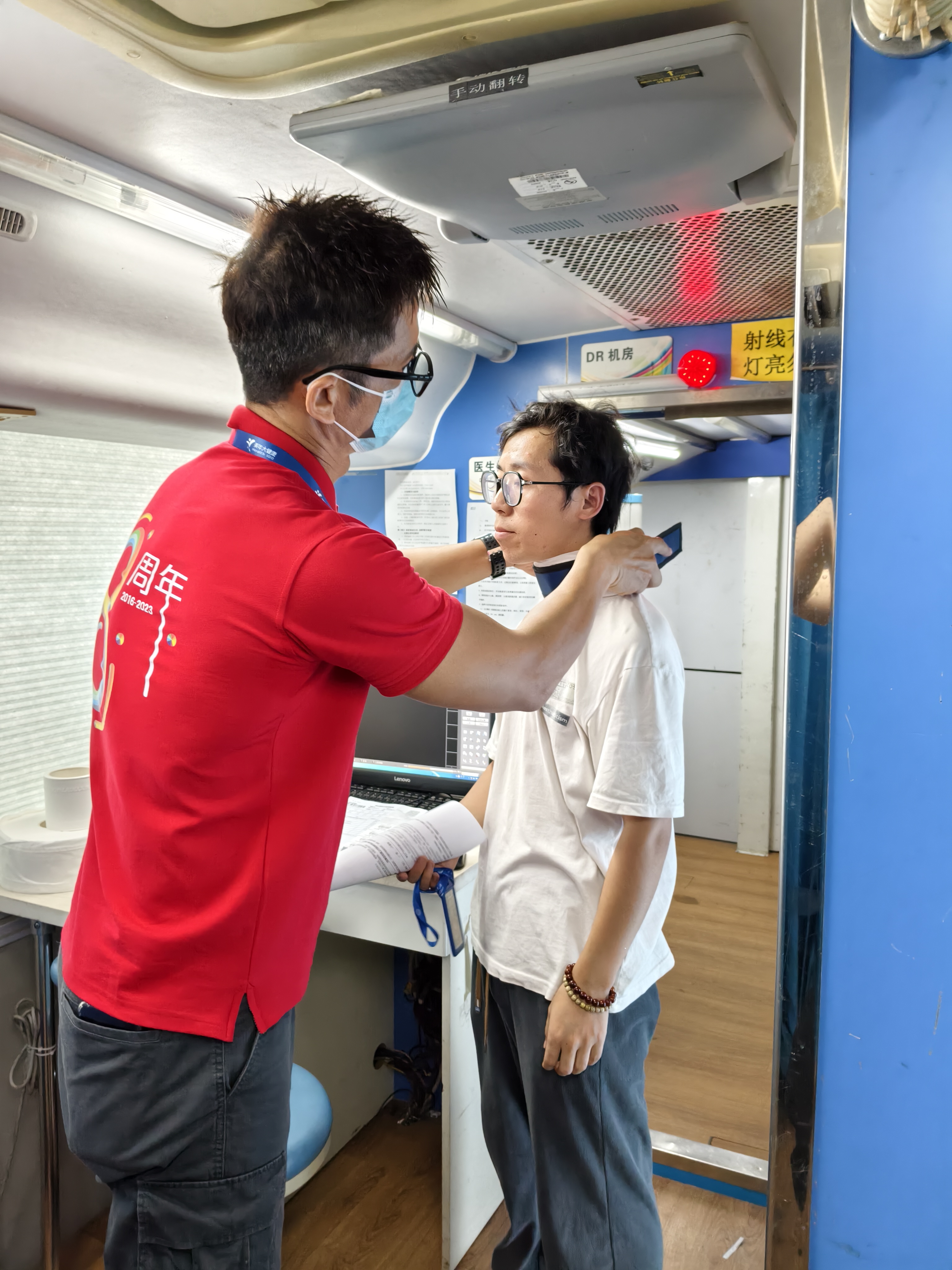 单,在医护人员引导下迅速分流到由工厂办公室改造的各个检查科室。