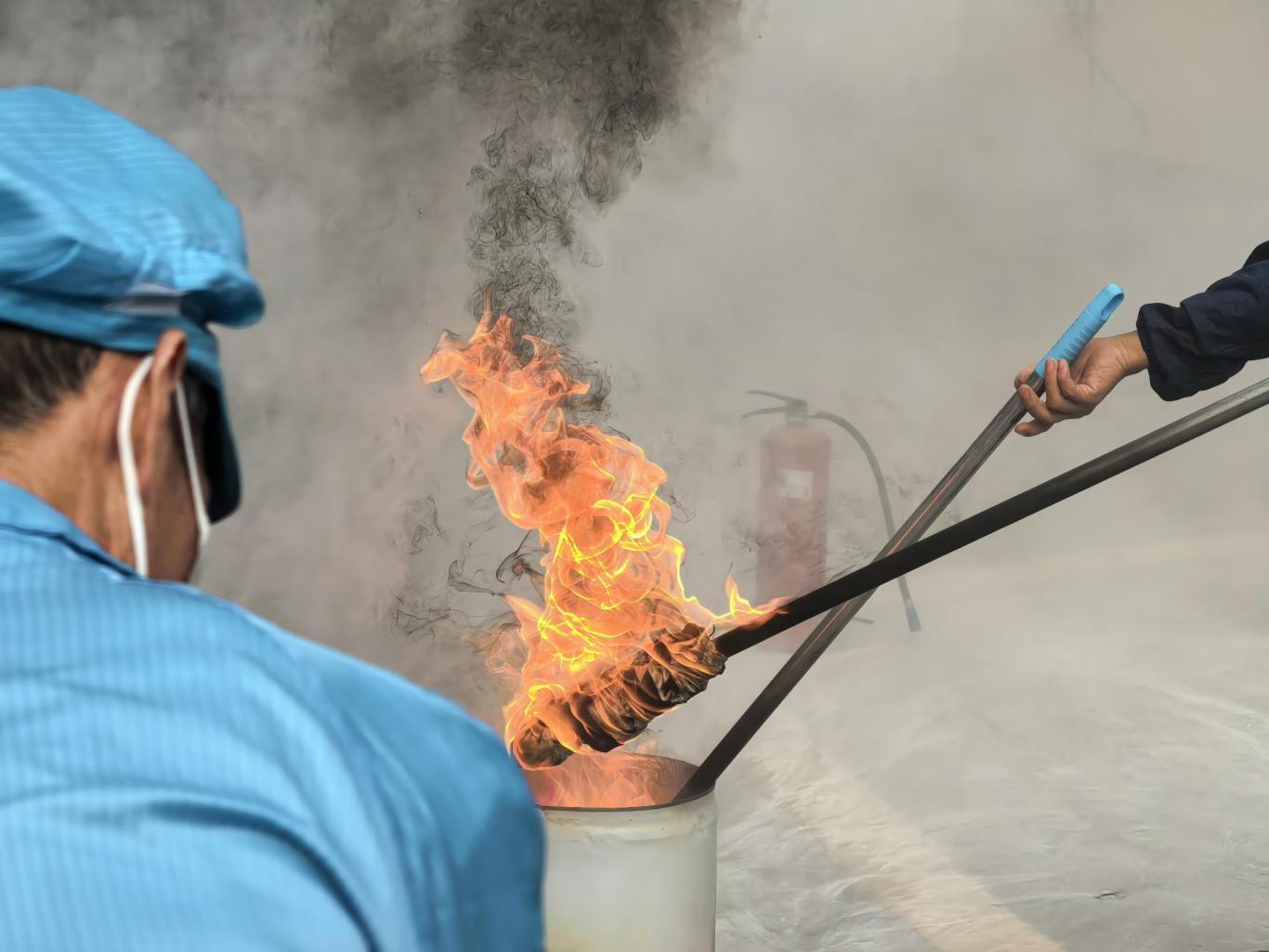 在消防大队专业人员指导下,员工轮流参与油桶灭火操作,将 “提、拔、握、压” 的灭火器使用口诀转化为规范动作,精准对准火焰根部喷射,有效避免了 “对着火焰顶部无效灭火” 的常见误区。