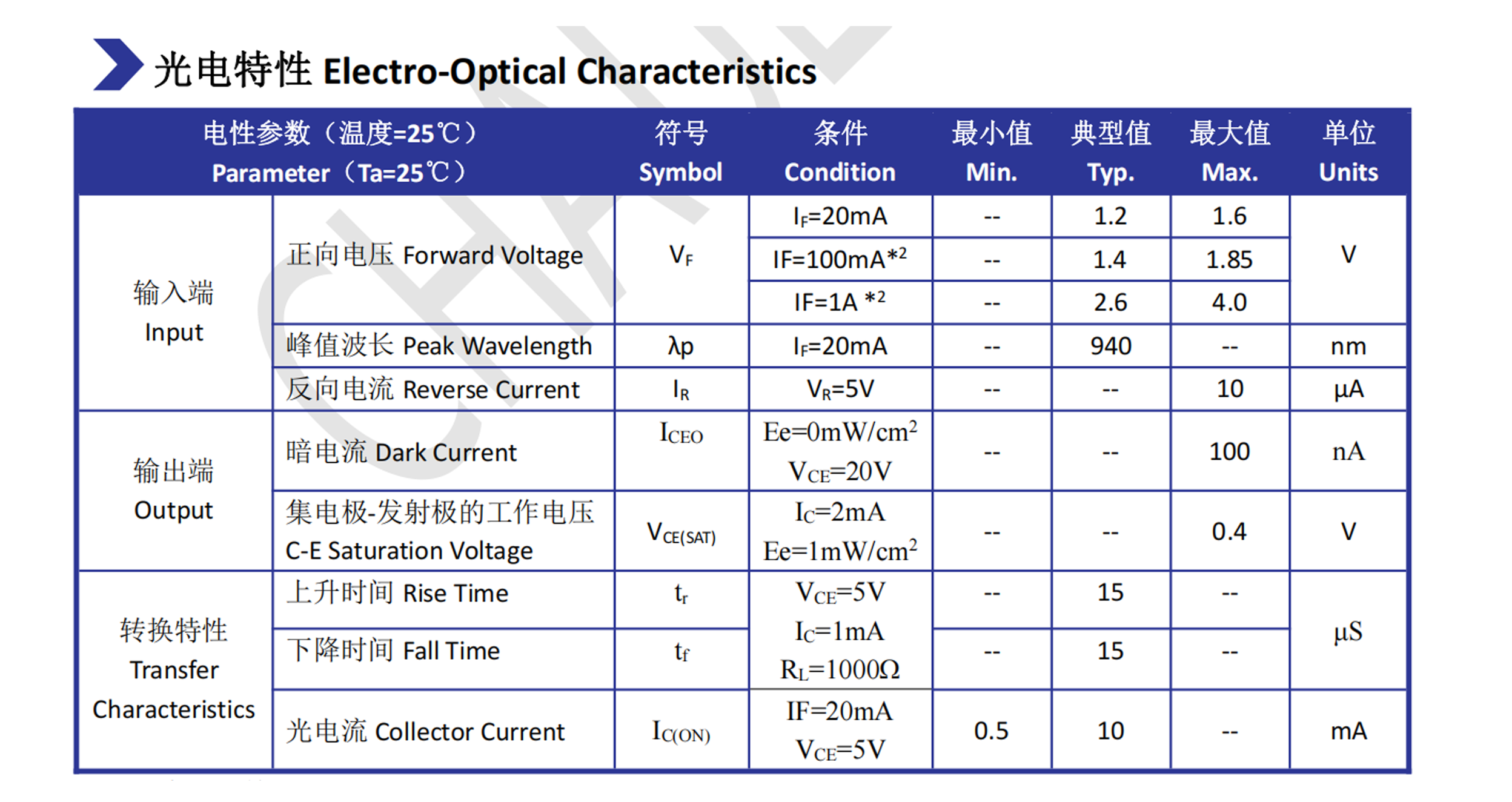 3.截止感应波长 940nm