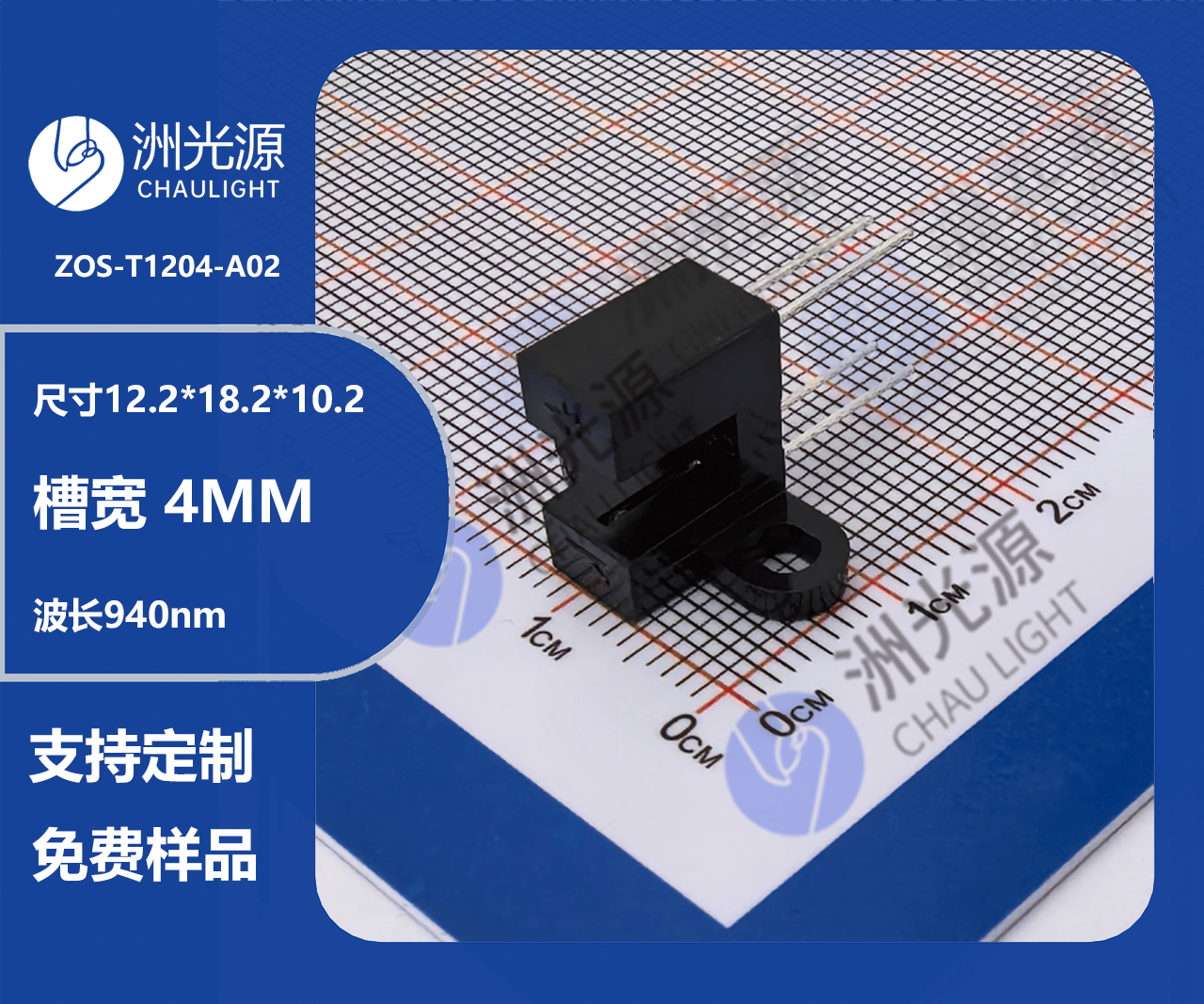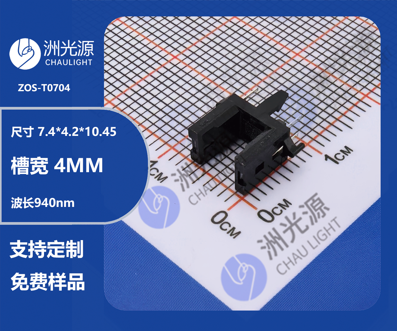 槽式光电开关通常是标准的U字型结构,其发射器和接收器分别位于U型槽的两边,并形成一光轴,当被检测物体经过U型槽且阻断光轴时,光电开关就产生了检测到的开关量信号。