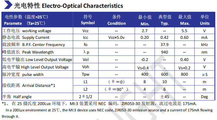 单个引线框架上,环氧树脂封装含有一个特殊的红外线过滤器及内置屏蔽抗