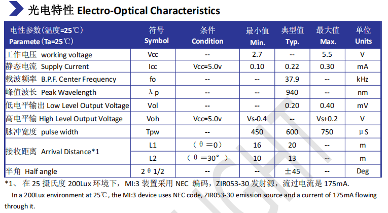 ZSIRM-Z3B4N88P是一种微型贴片封装红外接收器,用于红外远程控制和其它需要改进抑制环境光或灯光的应用。单独的PIN光电二极管和前置放大器IC电路组装在单个引线框架上,环氧树脂封装含有一个特殊的红外线过滤器及内置屏蔽抗干扰设计。