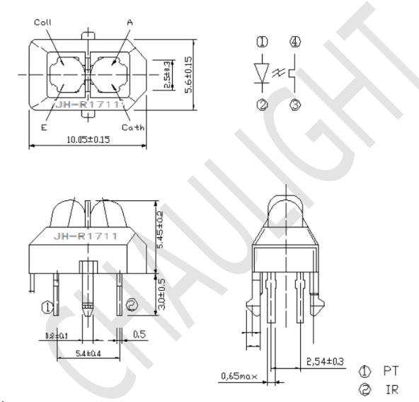 黑色热塑性外壳中的汇聚光轴上。光电晶体管只接收来自 IR 的辐射。这是正