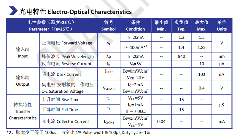 --截止感应波长 940nm