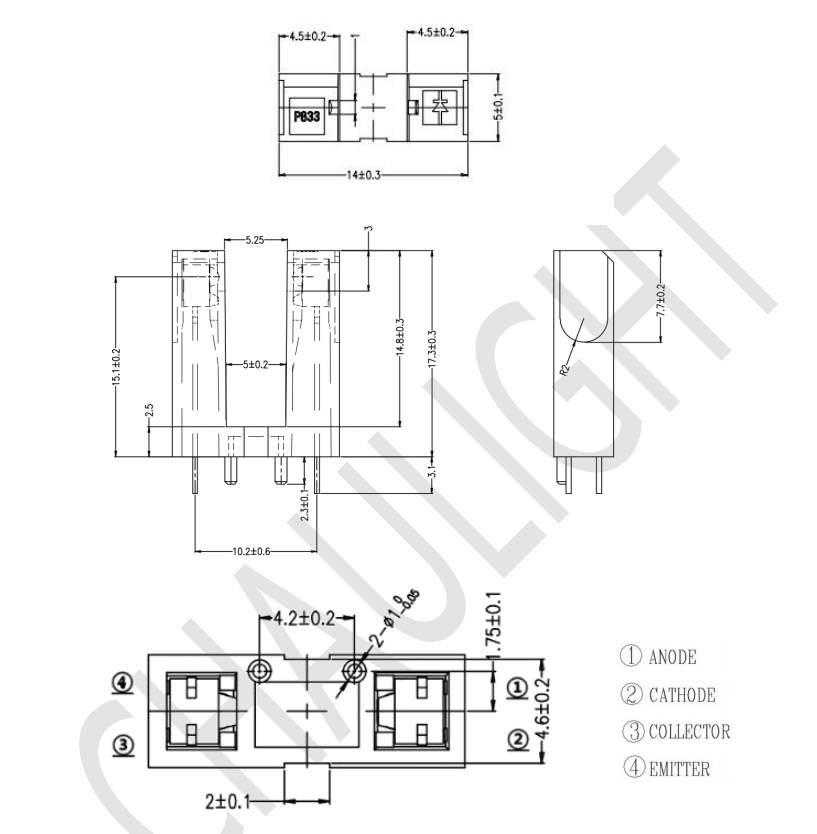 ZOS-T1405-C02 由红外发射二极管和 NPN 硅光晶体管组成,它们并排封装在