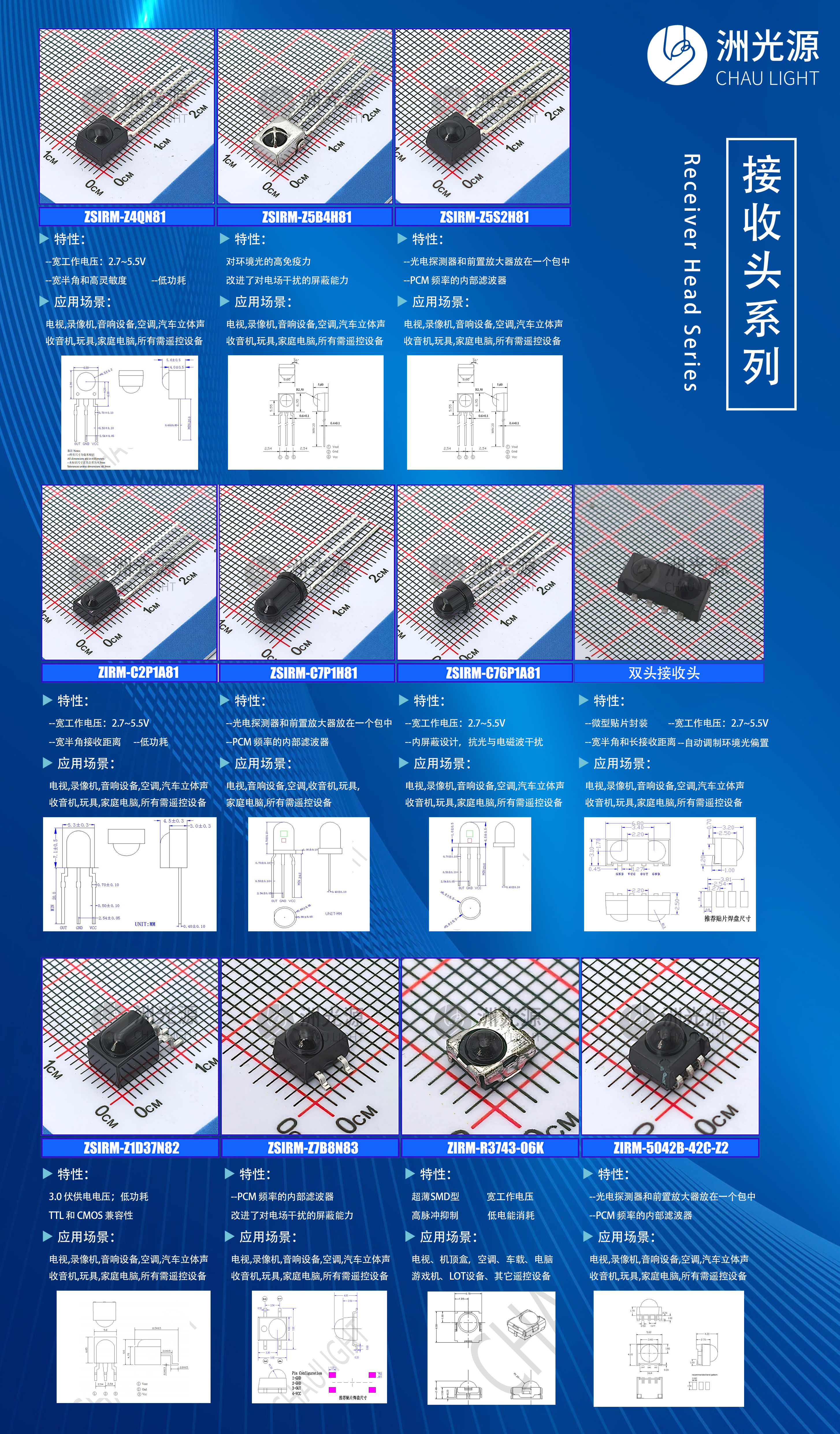 随着IoT和消费电子发展,红外接收头需求稳步增长,低功耗、高集成度、强抗干扰是未来技术演进方向。洲光源推出的红外接收头产品,基于成熟的设计与验证,将红外光信号转换为电信号的集成化光电元器件,广泛应用于遥控系统、接近检测、光通信等领域,以多元化封装、全场景适配、极致性能表现,为各类设备提供稳定可靠的信号接收解决方案。