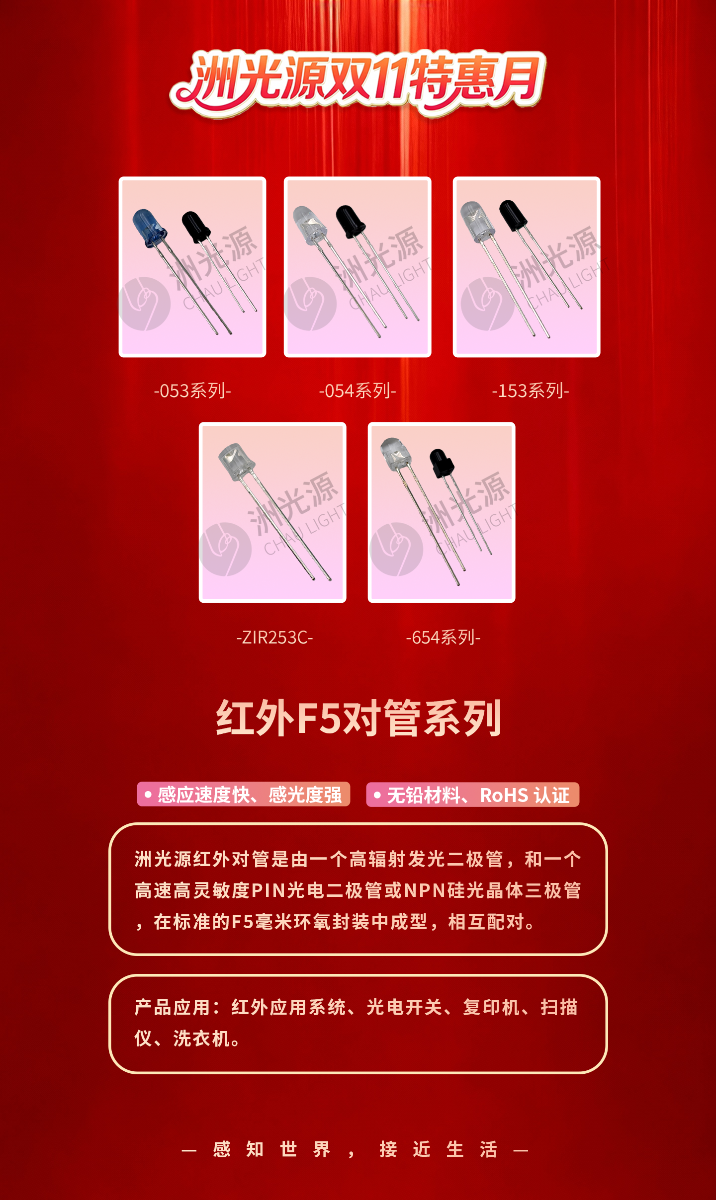 洲光源红外对管是由一个高辐射发光二极管,和一个高速高灵敏度PIN光电二极管或NPN硅光晶体三极管,在标准的F5毫米环氧封装中成型,相互配对。