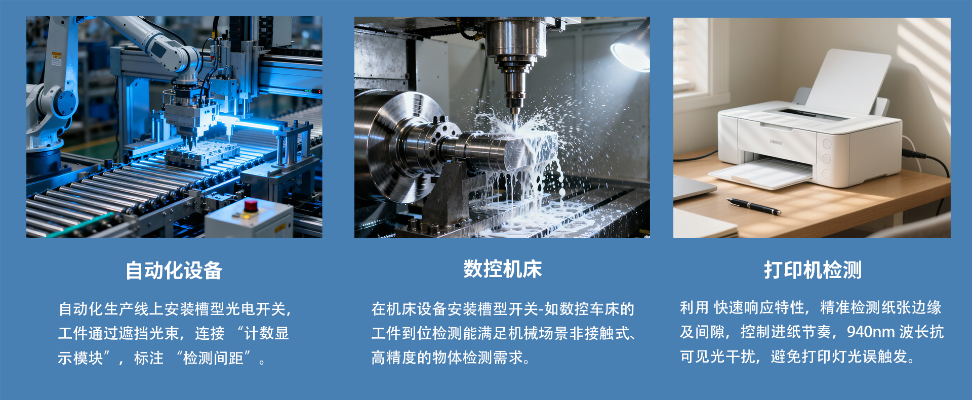 在现代办公及工业领域都有应用此款产品,它的性能特点既满足工业场景对稳定性与抗干扰的需求,又适配商用办公与家居场景的紧凑安装及环保要求。洲光源这款对射式光电开关,可靠性高,感应速度快,正向电压典型值1.2V,峰值波长940nm,集电极-发射极的工作电压最大值0.4V,在-25~+85℃工况下稳定运行。