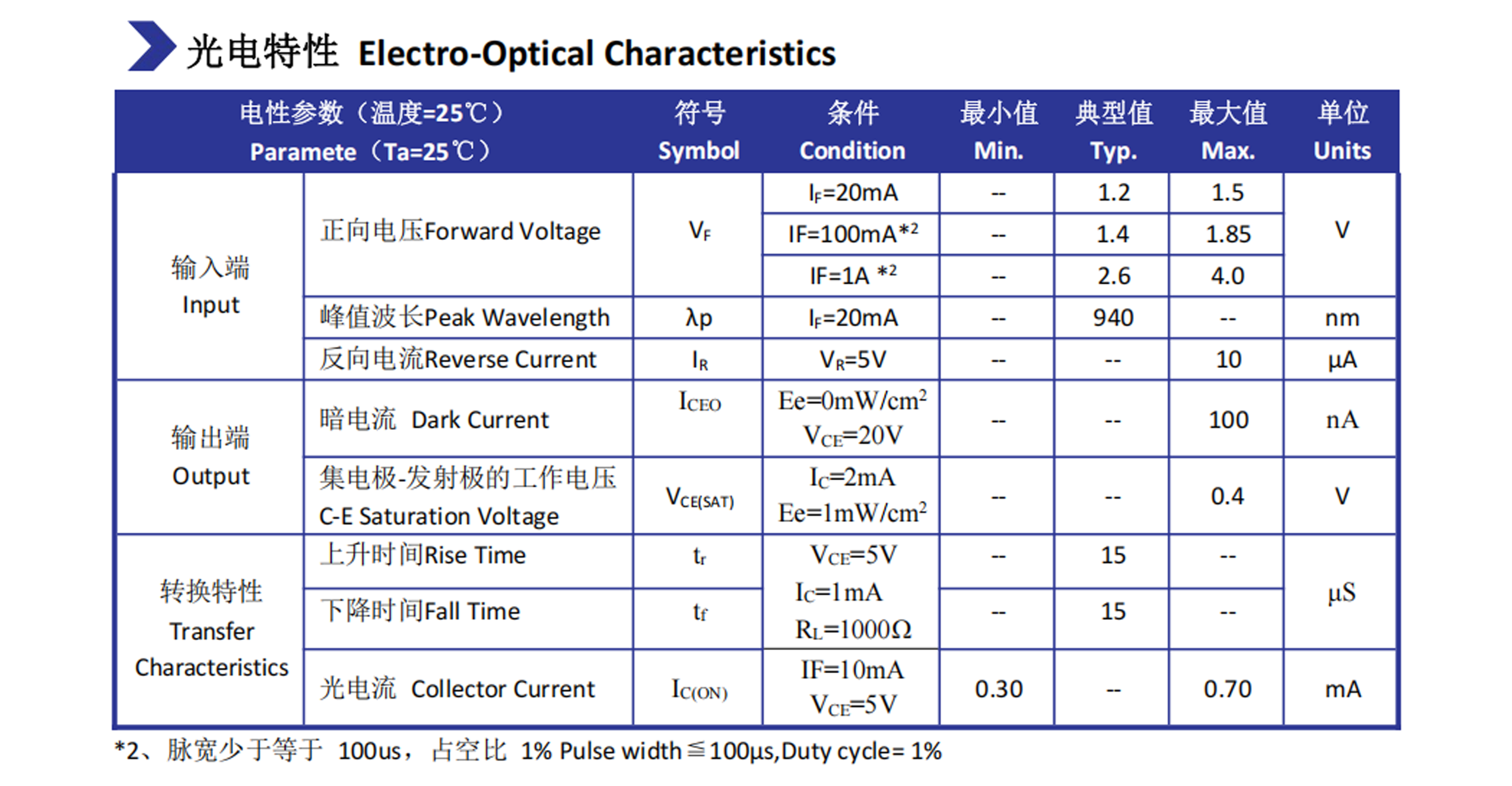 3.截止感应波长 940nm