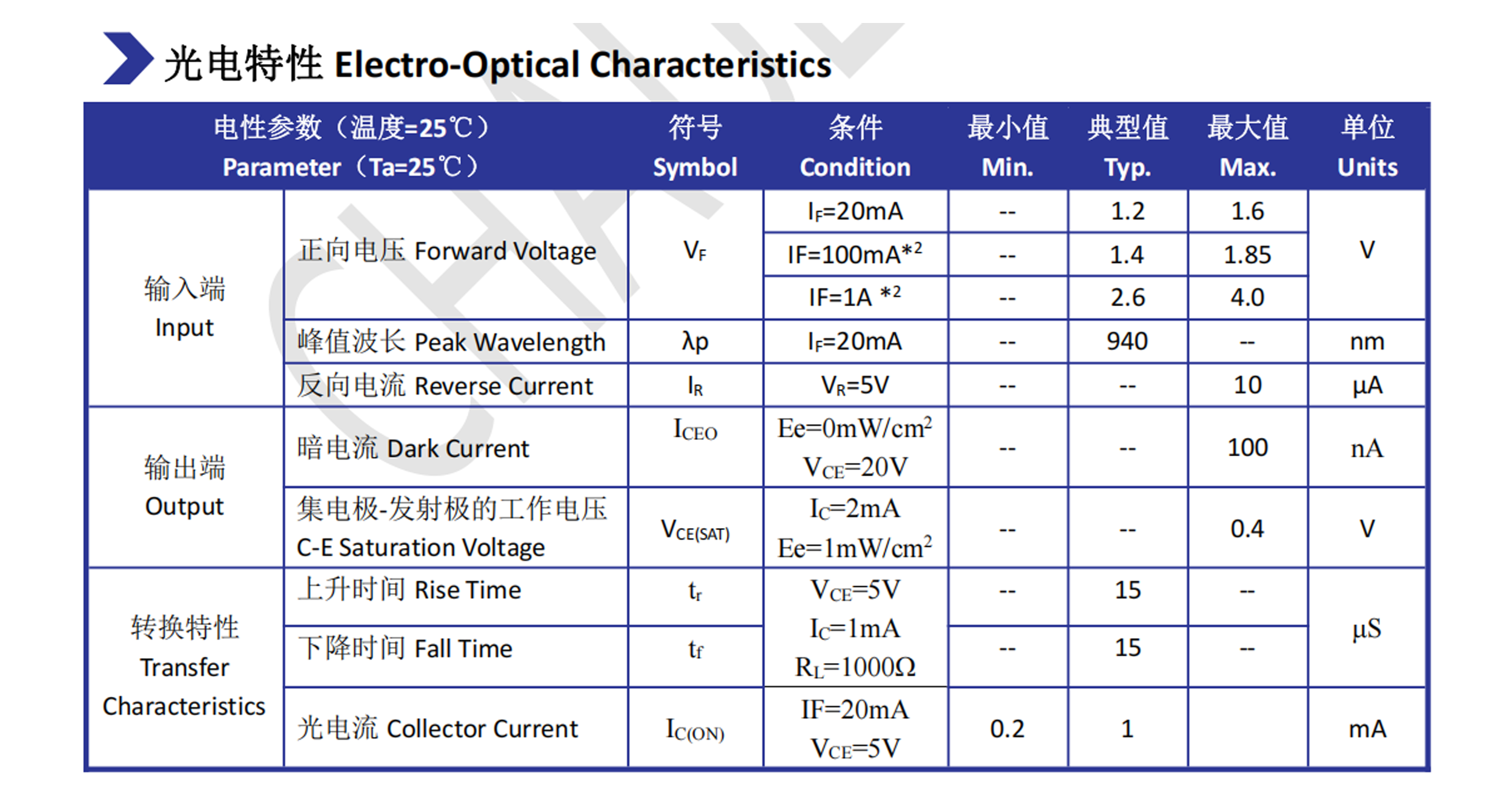 3.截止感应波长 940nm