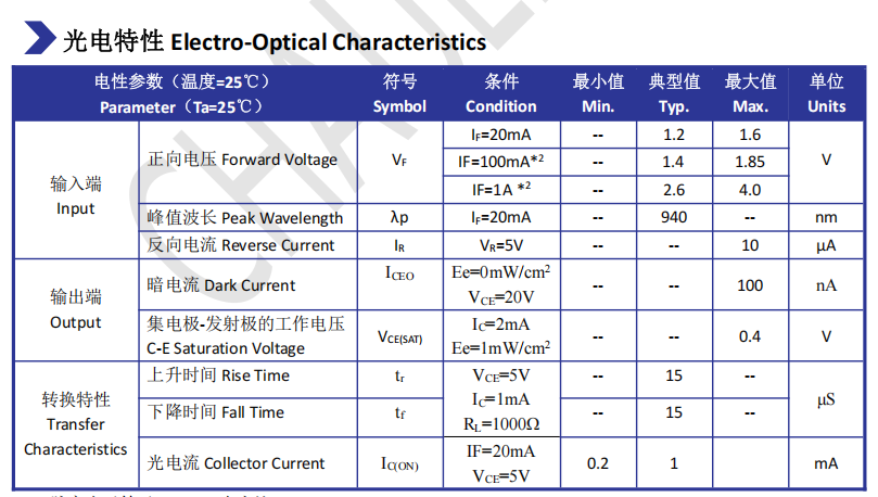--截止感应波长 940nm